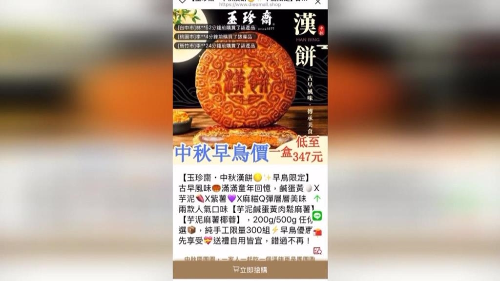 一頁式廣告詐騙又來了,這回受害的是百年餅店玉珍齋,假廣告主打販售中秋漢餅,還推出早鳥優惠價,甚至附上漢餅製作過程,強調來自台灣的古早味,還附上店家照片,不過業者出面駁斥,攏係假。鹿港百年老店玉珍齋,以做糕餅起家,到了中秋檔期也會賣月餅,但百年餅店的高名氣也被詐團盯上,製作一頁式廣告以假亂真,誆騙民眾購買。