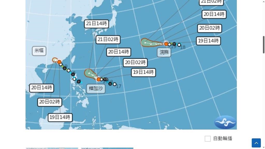 生活中心/綜合報導西北太平洋上三颱共舞,米塔、樺加沙、跟浣熊颱風,都在同一天生成,最要留意的就是"樺加沙",不排除升級為強颱,菲律賓更預估,可能發展成"超級颱風",下週一到下周三,具離台灣最近,可能為東部、南部帶來豪大雨,氣象專家預估,最快周日發海警、下週一就會發陸警!