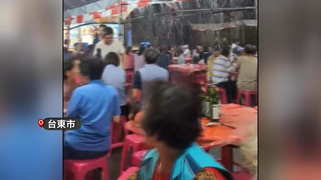 記者vs.民眾:「感覺怎麼樣?多好啊。會擔心嗎?不會啊,哪會。不了解的(風雨)的會擔心,我們已經了解我們不會擔心。」當地民眾已經習以為常,完全不擔心風雨,而這段畫面曝光後,引發熱議。有網友笑稱是"沉浸式體驗","看起來很開心、遇水則發",還有人說這才是"真正的流水席"。台東市民代表王泰㨗:「現場的民眾其實大家都知道,會有風雨的情況這樣子,只是沒有想到真的來了一波,風強雨驟的情況這樣子,但是大家都非常淡定,還是很穩定的就是,繼續吃我們的飯。」