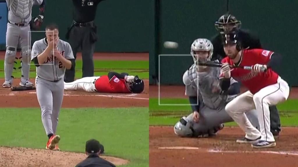 大聯盟老虎今天(24日)作客守護者,儘管推派賽揚王牌史庫柏(Tarik Skubal)先發仍以2比5不敵地主,然而在他此役最後投球半局更出現一次驚悚片段,六局下半史庫柏對決守護者指定打擊弗萊(David Fry),對手已經擺出短棒要觸擊,沒想到史庫柏投了一顆內角99英里(約159公里)的火球卻失準、直接砸中弗萊的臉,不但史庫柏掩面難以置信,現場球迷也全都嚇壞。