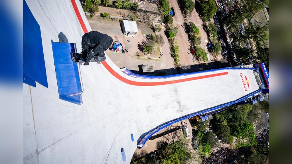 來自巴西滑板界的傳奇人物狄亞茲(Sandro Dias),將一座高達 22層樓的政府大樓,變成全球滑板史上最壯觀的巨型坡道,於9月25日成功完成Red Bull Building Drop的挑戰!這位 50 歲的 Red Bull 運動員在巴西的阿列格雷港 (Porto Alegre),不只征服「終極滑板坡」都市傳說,完美執行從樓頂一躍而下的壯舉,更一舉打破了兩項金氏世界紀錄。