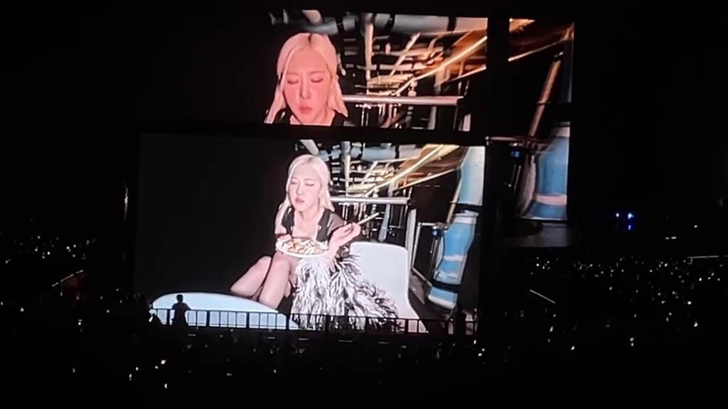 不只帶來一首首膾炙人口的歌,主唱Rosé進場時也入境隨俗,吃起鹹酥雞,讓粉絲陷入瘋狂。