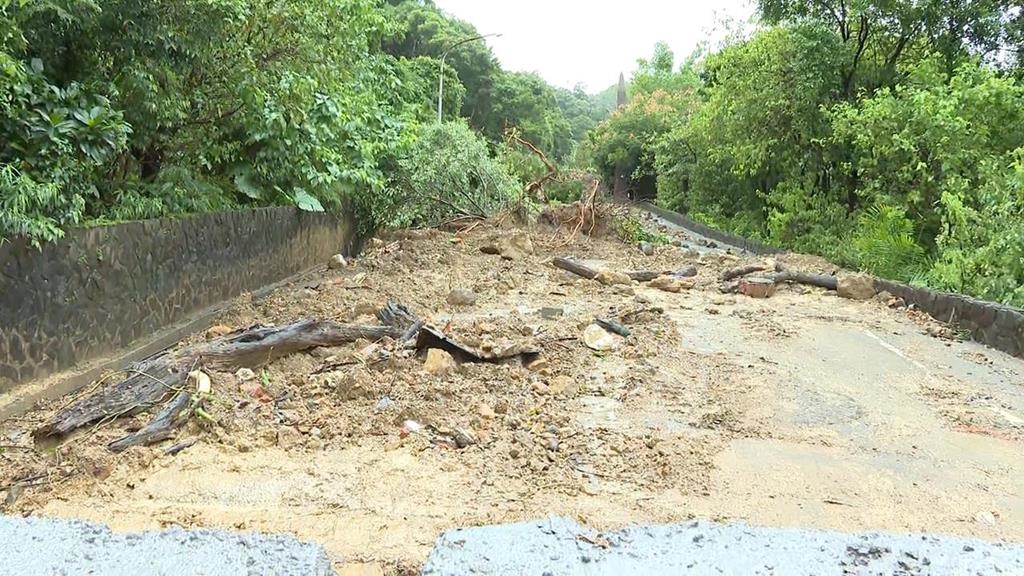 滿地黃土泥流,還有大塊石頭、樹木倒塌,現場一片狼藉,因為連日豪雨,位於新北市汐止山區的老爺山莊外的長青路,發生土石坍方,中斷道路通行。新北工務局動員人力,調派小山貓、怪手等機具進場清淤、搶修,目前道路已初步完成搶通,但強烈土石流沖進兩戶民宅,讓受災戶苦不堪言。