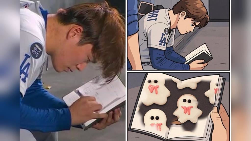 世界大賽道奇隊G2山本由伸投出完投勝,他超水準的表現大量圈粉,甚至山本在休息室拿出小筆記本的模樣,也被網友Kuso認為筆記本裡面一定有「千萬別交給牛棚」的字樣。