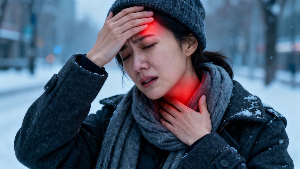 頭部是人體熱量流失最多的部位之一。若長時間受寒,腦部血管會反射性收縮,心臟也會加強輸出壓力以維持循環,這是許多人在冷風中感覺「頭一緊就暈」的原因。