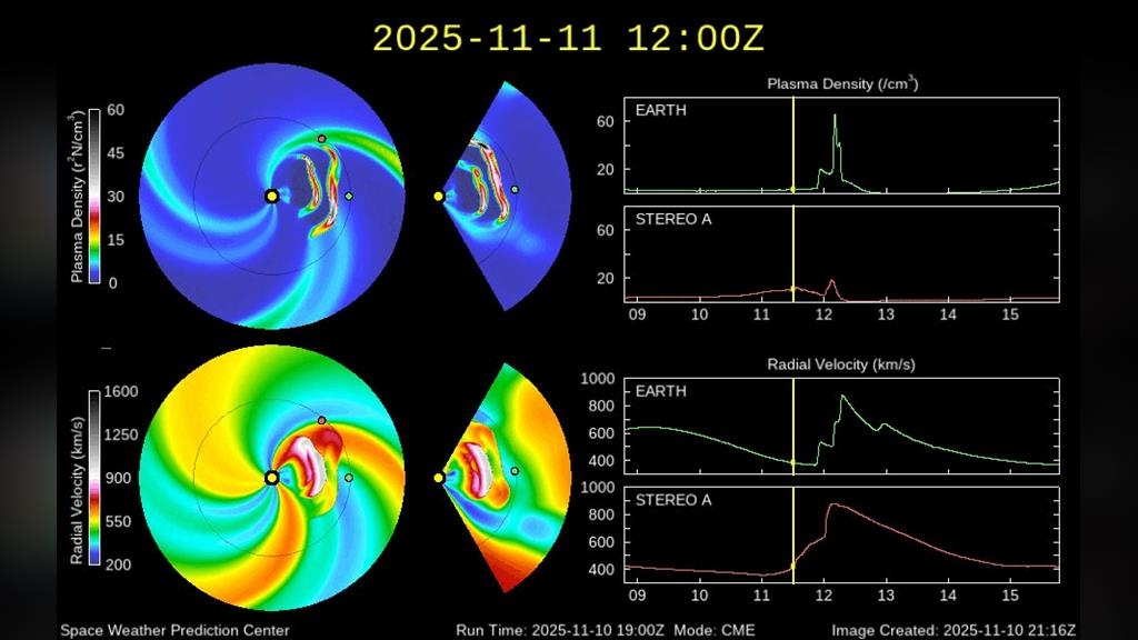 中央氣象署太空天氣作業辦公室表示,受到太陽表面活躍區AR4274於11月10日發生顯著的日冕物質拋射事件,預期11月11日晚間通過近地太空環境,造成行星際空間中的太陽風風速及密度明顯增加。