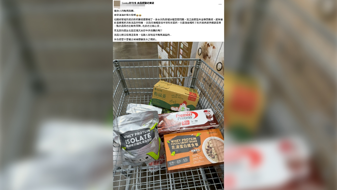 一位健身族網友在社團「Costco好市多 商品經驗老實說」發文表示,最近家裡蛋白飲和雞蛋都剛好要補貨,趁著颱風前夕前往好市多採買,卻意外被近期「毒雞蛋」事件嚇到。該網友坦言,過去常在全聯購買機蛋,沒想到新聞曝光的品牌裡就有平常愛用的幾種,讓他「真的怕爆」,因此決定改買品質把關較嚴的好市多雞蛋,「吃進肚子的東西,還是寧願貴一點但安心。」