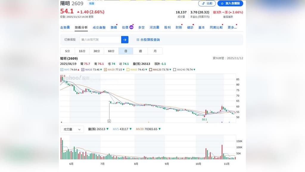 陽明海運(2609)於今(12)日召開董事會,通過114年第三季財報。114年第三季合併營收為新台幣420.92億元,稅後淨利60.49億元,稅後EPS為每股淨利1.73元。鑒於114年國際貿易政策與地緣政治風險之衝擊,陽明海運積極透過維持船期穩定性及確保營運效能,114年前三季累計合併營收為1,262.65億元,稅後淨利148.10億元;惟相較2024年同期因市場運價下滑,前三季稅後EPS為每股淨利4.24元。