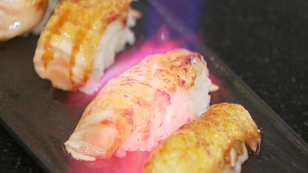 另一道,加入乾燒醬,拌炒藍鑽蝦,酒釀提香,還有炙燒握壽司和切片牛排,吃到飽餐廳搶攻普發商機,消費滿兩千就能抽萬元抵用金。