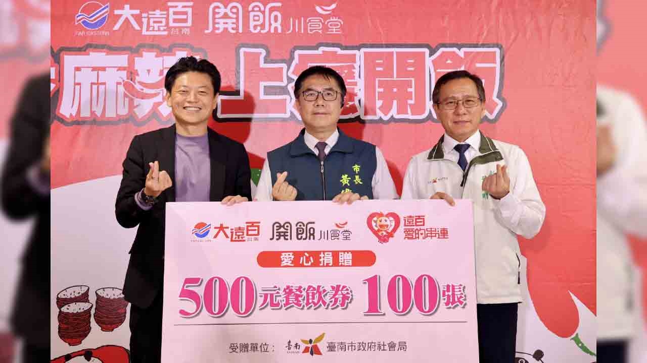 「開飯川食堂」17日正式進駐台南大遠百。開幕這天,餐廳特別熱鬧又特別溫暖——饗賓集團與遠東百貨一同邀請來自臺南市腦性麻痺之友協會、臺南市私立林澄輝社會福利慈善基金會及臺南市癲癇之友協會的30位智青、社工與教保員共進午餐,讓新餐廳從第一天起,就充滿笑聲、分享與陪伴的力量。活動中,饗賓集團也捐贈 5 萬元餐券給臺南市社會局,希望讓更多弱勢家庭在需要時能感受到支持與溫度。