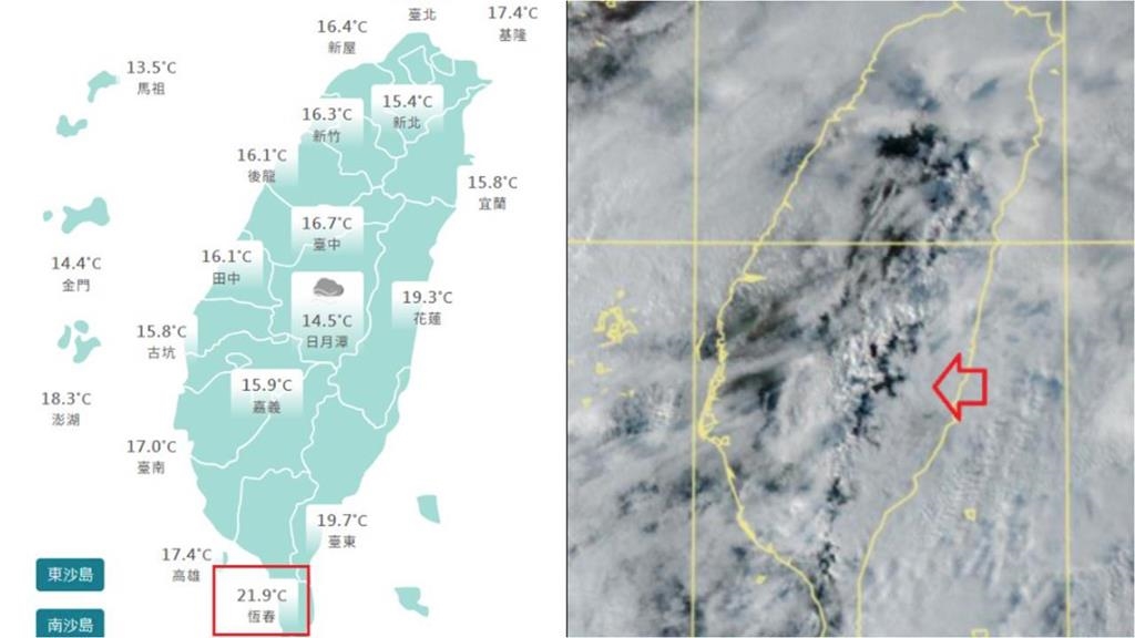 生活中心/李汶臻報導入秋以來「最強冷空氣」報到,據中央氣象署說法,今(19日)白天北部及宜蘭整天溫度只有16、17度,明(20)日全台持續受東北季風影響,各地皆感受涼冷。而在全台急凍之際,雲圖顯示台灣上空出現一個神秘的「X」鏤空區域,對此前氣象局長鄭明典就發文解釋背後的真實原因。此外,他稍早也上傳一張全台的天氣現況圖,目前各地代表站中,「這地」除外,其他地區氣溫全跌剩下1字頭,提醒民眾持續注意氣溫變化。