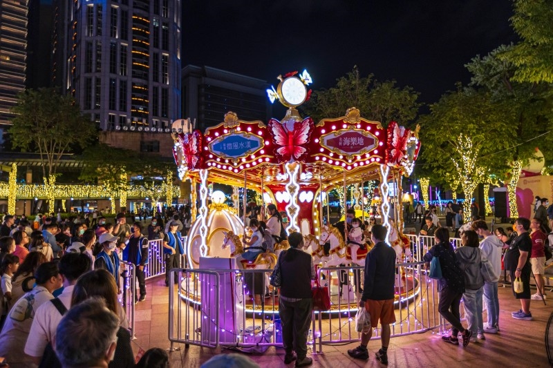 今年的旋轉木馬披上閃耀星光,夜晚乘坐時光影會映在木馬身上,整體夢幻度大幅升級。木馬旋轉時會搭配音樂,是小孩喜歡、大人也會陷入回憶感的浪漫拍點。