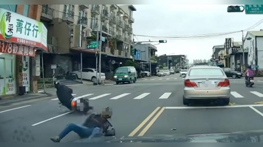 桃園3寶神級對撞!行人闖紅燈+機車逆向搶快 雙雙撞成1秒躺平