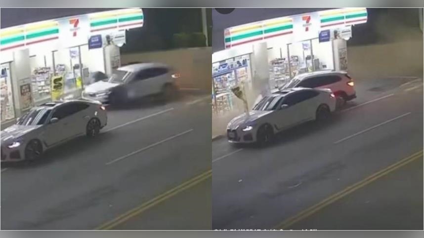 根據初步調查,事故發生時多輛雙B轎車沿員鹿路往埔心鄉方向高速行駛,引擎轟鳴聲相當明顯。開在最前方的車輛突然失控,直接撞進路旁超商,撞擊力道之大,整面玻璃瞬間破裂。後方三車因未能及時反應,在刺耳的煞車聲中接連追撞,車身嚴重受損,碎片散落滿地。