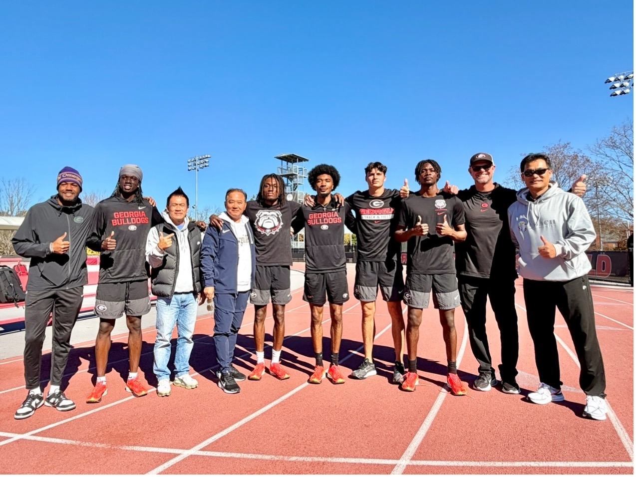 喬治亞大學(University of Georgia,UGA)田徑隊是美國NCAA Division I、東南聯盟(SEC)中實力非常頂尖的隊伍之一。隊名為 Georgia Bulldogs。其中有2024年巴黎奧運女子1600公尺接力金牌,2025年東京世錦賽男子全能運動銅牌,男子短距離組最佳成績9秒95,平均成績在10秒初,400公尺最佳44秒。女子短距離組最佳10秒9,平均成績約11秒初,400公尺最佳49秒。女子鉛球最佳成績接近19公尺,女子跳遠最佳成6公尺60。