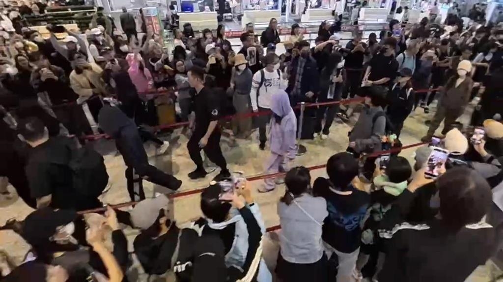 八名成員來到高雄小港機場,依序走下保母車,此時,機場內早已聚集上百名粉絲熱情迎接。聲源:粉絲:「子瑜韓國見。」與ONCE們揮手、點頭依依不捨告別,戴著口罩與藍色帽子,手提奶茶色包包,就是台灣成員周子瑜。聲源:記者:「子瑜第一次回台灣演唱感覺怎麼樣,子瑜早安這次回台灣有沒有很開心。」面對提問,子瑜頻頻點頭,接著快速檢查護照後準備出境,TWICE結束在高雄的兩天演唱,24日搭乘一早7點多的班機離開高雄。粉絲:「想說難得來台灣可以送個機。」粉絲:「四點的時候就來了,子瑜歡迎回家,我們明年還會繼續看妳們。」