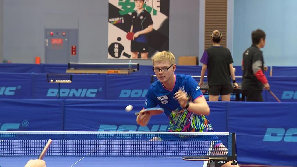 一頭金髮搭配黑色眼鏡,身穿藍色上衣,拿著球拍與夥伴專注訓練的男子,是來自法國的桌球運動員,費利克斯·勒布倫,近日首次來台,並在高雄進行移地訓練。巴黎奧運期間被台灣人稱作眼鏡弟的他,是歐洲少見的直拍選手,不但獲得2023年歐洲運動會男子單打金牌與男子團體銅牌,還在2024年世界桌球錦標賽贏得男子團體銀牌、巴黎奧運男子單打與男子團體銅牌,對於這次在高雄的訓練,他覺得很開心。法國男子桌球運動員費利克斯.勒布倫:「訓練環境非常好球館也很棒條件很優越,這裡的食物也非常好吃,我們很享受在中心用餐,所以我很高興能接觸新的文化和美食,真的很喜歡這裡的食物。」