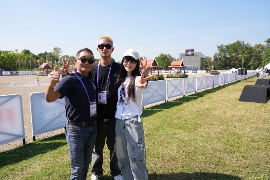 臺灣本屆參賽不僅是選手與馬匹,包括後勤人員與加油團,一行人熱熱鬧鬧,馬術協會理事長許安進更帶著愛妻金瑞瑤一同前來,果然看到臺灣選手的出色表現,接下來還有障礙超越的賽事,他期盼選手能繼續加油,爭取最好成績。