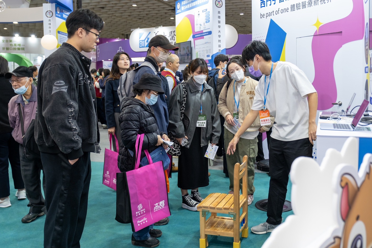 高雄醫學大學、高雄醫學大學附設中和紀念醫院、高醫岡山醫院、小港醫院及旗津醫院攜手呈現最具代表性的產學研醫亮點。財團法人私立高雄醫學大學董事會董事長陳建志亦率領高醫體系主管於高醫醫療體系展區,共同展現高醫智慧醫療的最新能量,邀請民眾前往參觀體驗。