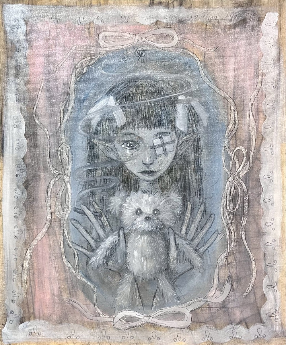 弱視 │ 艾卡 │72.5× 60cm│色鉛筆、油畫棒、油彩、畫布│2025