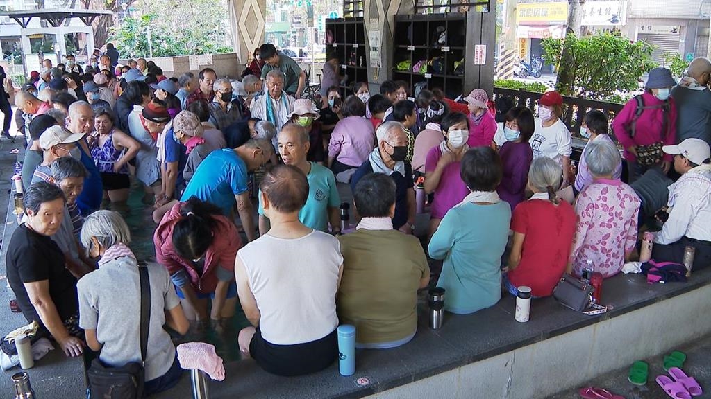 北投復興公園泡腳池人潮滿滿。(圖/民視新聞)