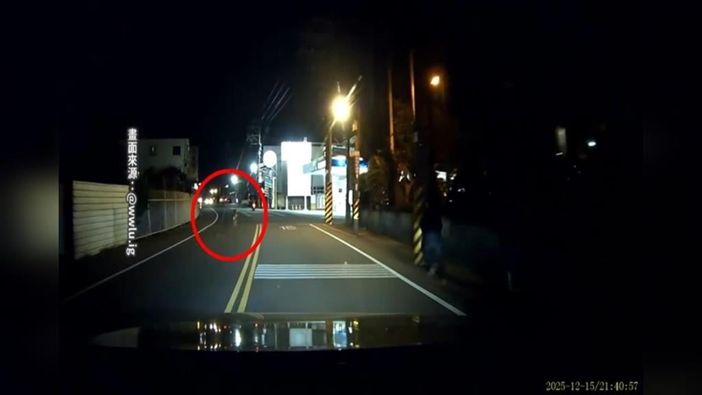 深夜大馬路上,一名機車騎士直行騎在道路上,不過"揪兜媽爹"仔細看,一隻咖啡色的羊突然從路旁竄出,一路狂奔。還跨越車道,騎士嚇得急忙閃躲。後方2名飼主跑到氣喘吁吁還追不上,因為羊實在跑得太快了。