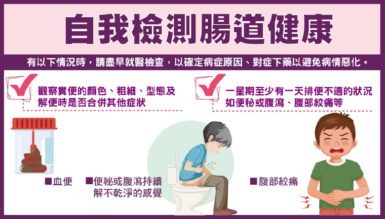 觀察糞便顏色、粗細和型態 解便時掌握是否合併出血症狀