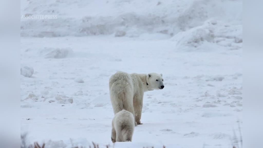 美聯社18日釋出的影片顯示,在有著「世界北極熊之都」之稱的加拿大曼尼托巴省(Manitoba)邱吉爾鎮(Churchill),一頭北極熊母熊正在兩隻幼熊周圍緩慢走動,一頭幼熊正看著鏡頭,另一頭幼熊把鼻子淺淺地伸入雪地後,也轉頭看向鏡頭。這兩隻幼熊看似都是母熊的孩子,但其實不然。