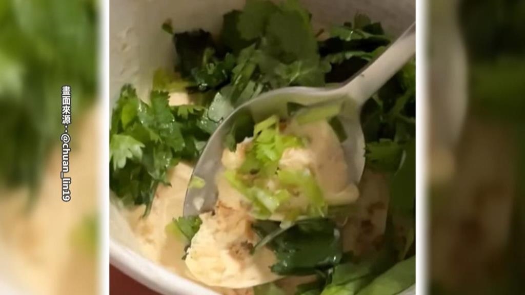 桶裝冰淇淋,鋪滿一整層綠油油的香菜,乍看還以為是新品上市,但其實不是。