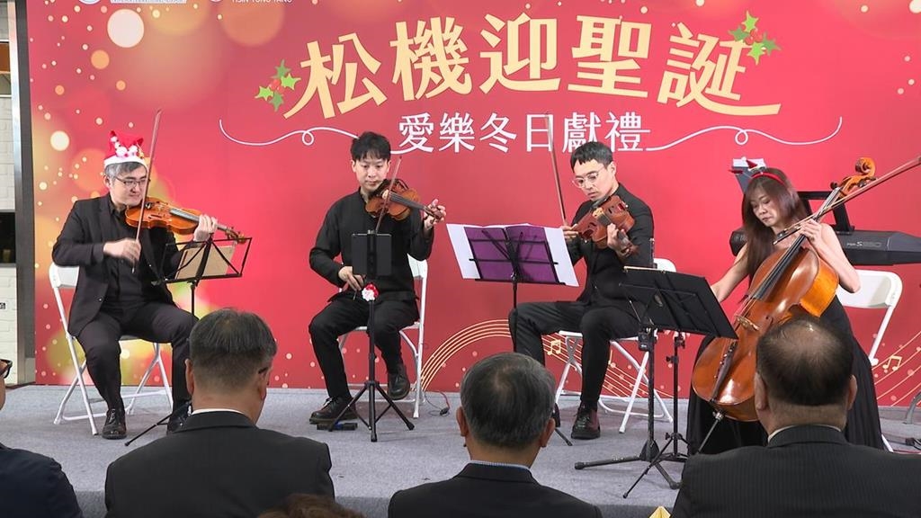 台北國際航空站主任 鄭堅中:「我們希望讓松山機場可以,打造出來一個很溫馨,又有藝文氣息的一個候機空間,所以不僅僅好像是像這個新東陽,今天我們在舉辦的這個耶誕節的這個音樂會之外,其實我們平常也都會,舉辦各式各樣的活動」。
