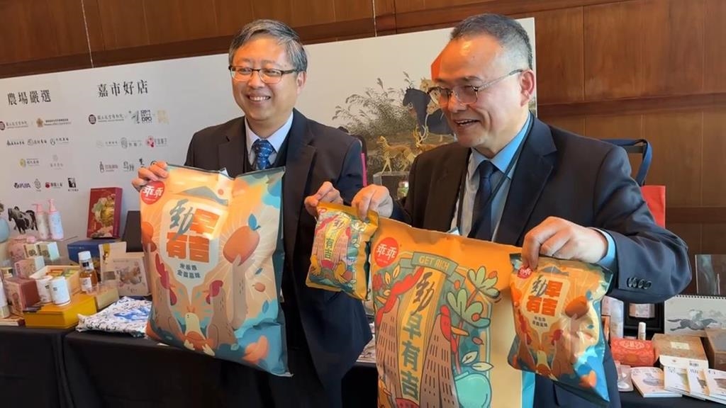 台灣人最愛的諧音梗,故宮也參一咖,推出金棗風味的聯名零食,名稱跟著我唸一次,要"勁早有吉",創意來自明朝的鬥彩雞缸杯與清代的仿御筆盆橘圖,過年拜年帶這一包準沒錯,院長還秀出放大版讓媒體拍照。