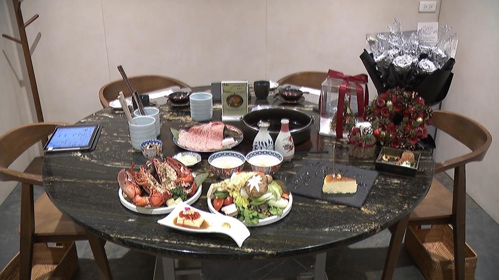 民視記者唐詩晴:「約好跟另外一半,要來一場浪漫的耶誕大餐約會,卻來不及準備禮物沒有關係,有壽喜燒業者腦筋動很快,直接跟花藝店合作一條龍服務,幫你把花都準備好了,(聖誕快樂)謝謝。」