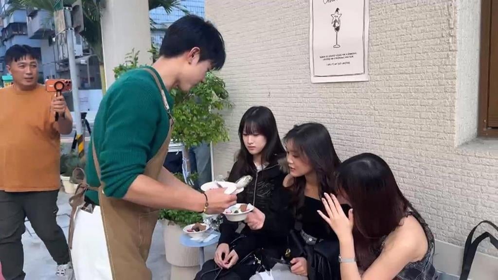咖啡店員將冷萃優格放進碗中,加入新鮮水果和烘烤燕麥,親自走到店外,將產品送到顧客手中,乍看之下,還以為是哪個藝人的一日店長活動,但其實他是貨真價實的店員,外貌神似韓國歐爸,不禁讓顧客直呼是從韓劇裡走出來的男主角。顧客:「真的長得還蠻像韓劇裡面走出來的,還看蠻清晰,而且台灣還蠻少見到這種,又高又白的男生。」顧客:「就有一種練習生的感覺,蠻有韓團的感覺。」顧客:「蠻帥的很像不會一般在路上看到的人,然後很像韓國人。」