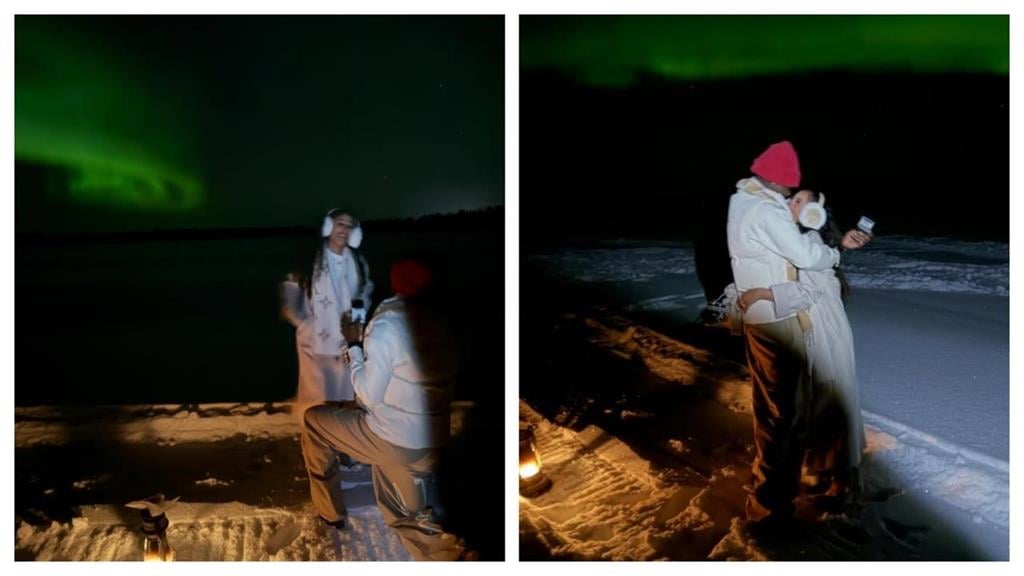 Ahna Mac是「爵士哥」女友的藝名,本名則是Ahnalys Santiago,從她分享的照片中看到,兩人在冰天雪地裡,Chisholm單膝下跪求婚,隨後兩人在綠色北極光照映之下開心親吻,慶祝訂婚的幸福時刻,Santiago也在照片中秀出閃亮的鑽石訂婚戒指。