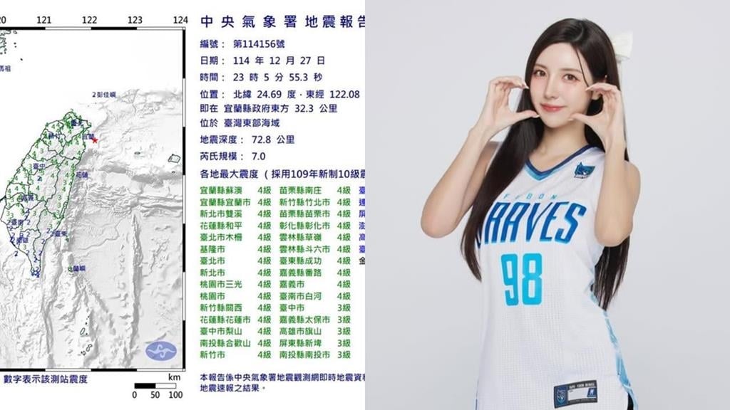昨(27日)23時05分宜蘭外海發生芮氏規模7.0強震,震央位於宜蘭縣政府東方32.3公里的台灣東部海域,全台劇烈搖晃相當有感。南韓啦啦隊人氣成員南珉貞來台發展1年多,以親和形象與活力十足的應援吸引大批球迷,成為「富邦三本柱」之一。地震發生後,她火速發文「地震,好大!!!!!!」,粉絲留言笑喊「珉貞成為真正的台灣人!」。