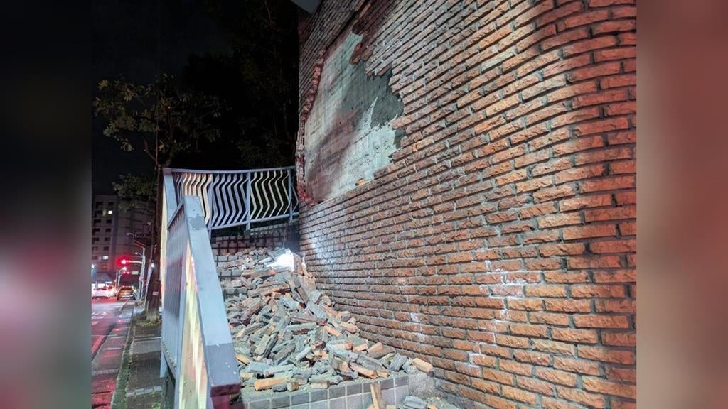 新北新莊區龍安陸橋紅磚震損剝落 已封鎖維安