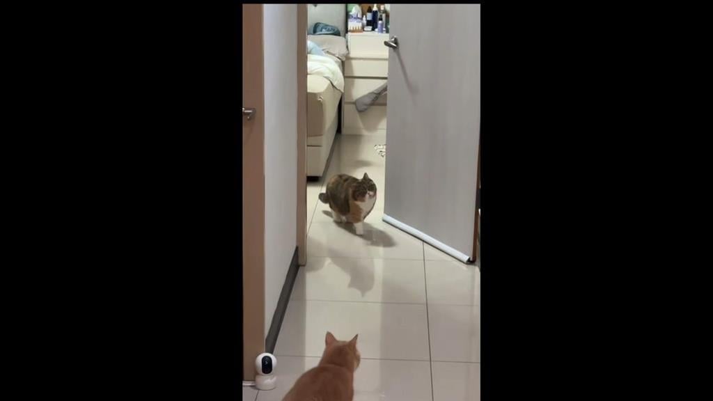 飼主:「地震地震地震,珠珠呢,欸怎麼這樣。」把珠珠震到石化,眼睛瞇起來,站了一個丁字步,還以為貓咪在擺POSE。還有貓咪顧著吃飯,飼主要說這隻可能是花蓮貓;不過,地震一來,還真的有不少貓貓嚇到不敢動。飼主:「警戒警戒!」實在嚇壞了,貓咪瞪大眼睛要坐也不是,要跳下來也不是,但也有貓咪,第一時間是去跑跑步機,兩隻貓還搶著跑,主人笑說這是"跑得夠快就感覺不到地震嗎?"