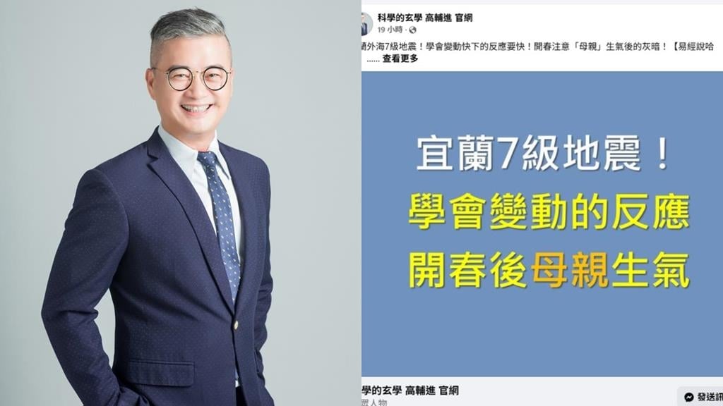 27日深夜宜蘭外海發生全台有感強震。對此,命理老師高輔進昨(28)日在臉書發文透露,自己在地震當下,剛好與北部客戶在視訊諮詢,看見客戶家的吊燈大幅度擺盪,驚覺威力不小,便使用易經起卦,沒想到取卦得到「頤卦」,卦意為「吞噬」;太極空間取卦,得到「空亡卦」,卦意為「很大的不利」,發現「糟糕了!」。高輔進指出,繼本月「台南和高雄4連震」及「台東連續多起地震」後,他再一次卜到「空亡卦」,他提醒大家不可忽視「大地母親」的力量,尤其在跨年到農曆年間需特別留意,並點名南亞、印巴、非洲、南美、土等地域,也需注意「母親」動怒的可能。