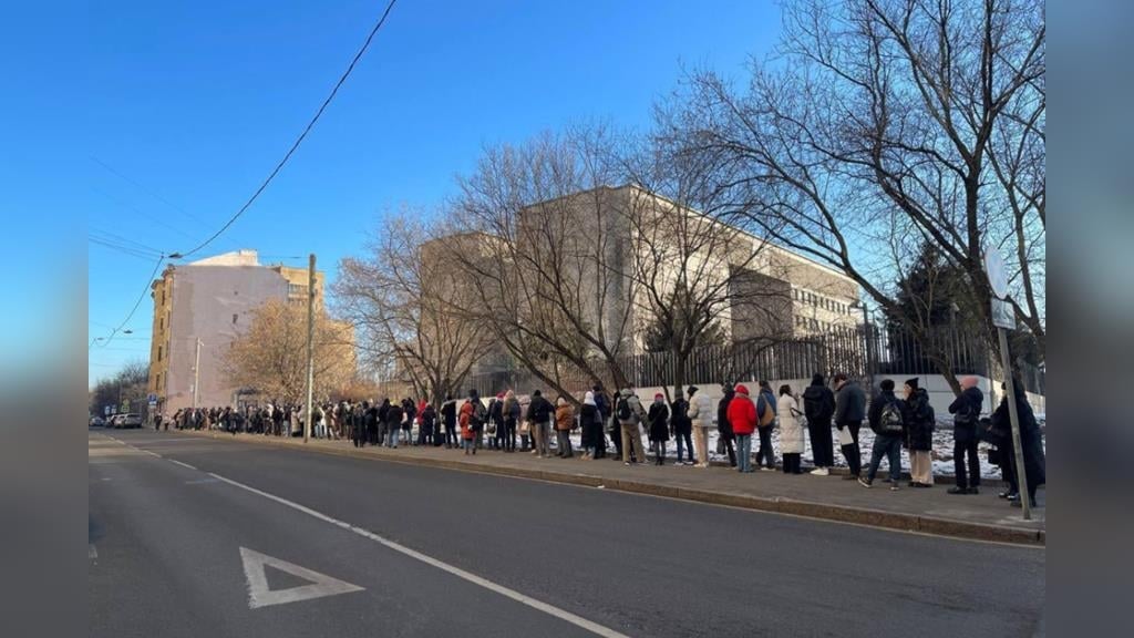 共同社報導,12月的莫斯科早晨雖然已是零下10度,但在天寒地凍當中,駐俄羅斯日本大使館前方依舊大排長龍。2026年3月計畫赴日賞櫻的上班族貝特金娜(Anastasia Betkina,24歲)表示:「辦理前往歐洲的簽證有時要等一個多月,但日本幾天就能取得。」
