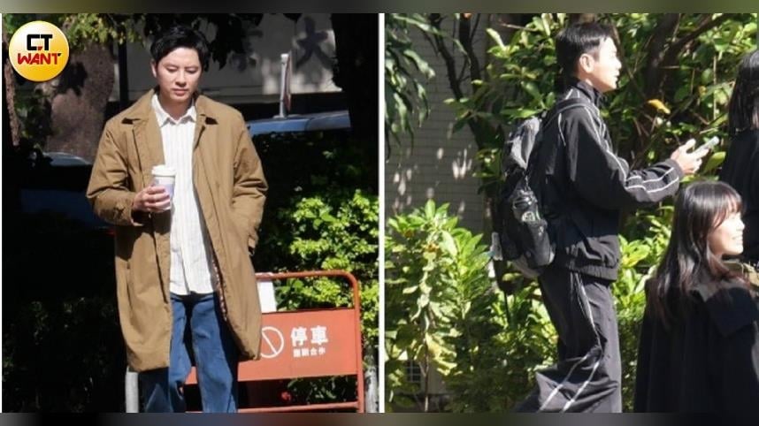 原以為只是學校同事間的對戲,下午3點後,劇情大轉變,李國毅和禾浩辰換了身比較輕便服裝,都是藍色系毛衣、牛仔褲與小白鞋,有點情侶裝的感覺,看起來是拍攝下班後的劇情,