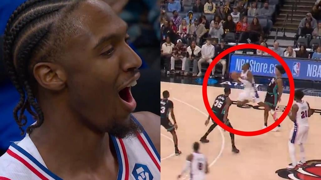 NBA費城76人今天(31日)作客曼菲斯灰熊主場,上半場最後一波進攻掌握在76人主控馬克西(Tyrese Maxey)手上,他獨自快速推進到前場,在剩下2.1秒時透過假動作和變換腳步擺開對位防守,接著在空中使出「馬戲團式拉桿」飆進大號壓哨三分彈,幫助球隊半場打完和對手戰成72比72,這次進球就連馬克西自己也難以置信,被鏡頭捕捉到「嘴巴都闔不起來」。