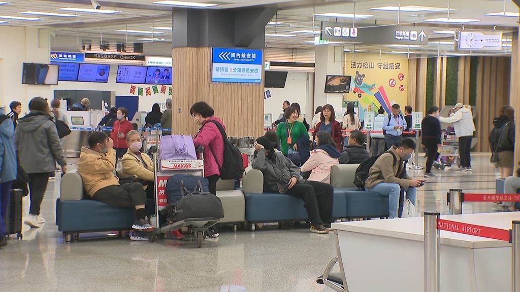 松機旅客:「從高雄搭遊覽車上來,因為高雄班機被取消了,是昨天晚上,後來有預訂到這個加開的班機,我們全部30幾個人搭遊覽車上,因為我們要參加跨年晚會」,