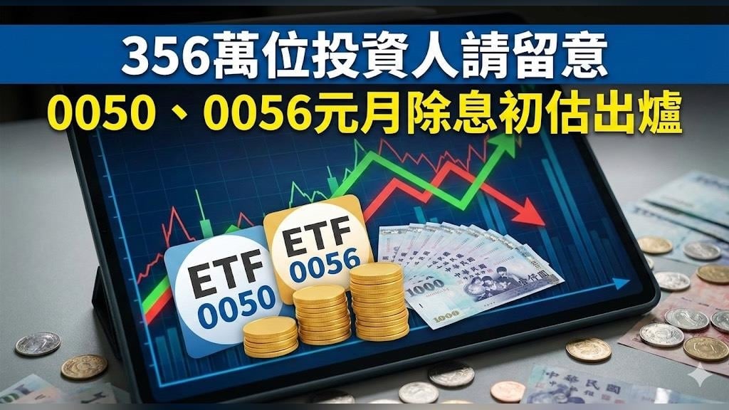 逾356萬位投資人請留意!元大台灣50(0050)、元大高股息(0056)元月除息初估出爐,0050每受益權單位預估配發1元,優於上次的0.36元;0056初估配息0.866元,連3季不變。