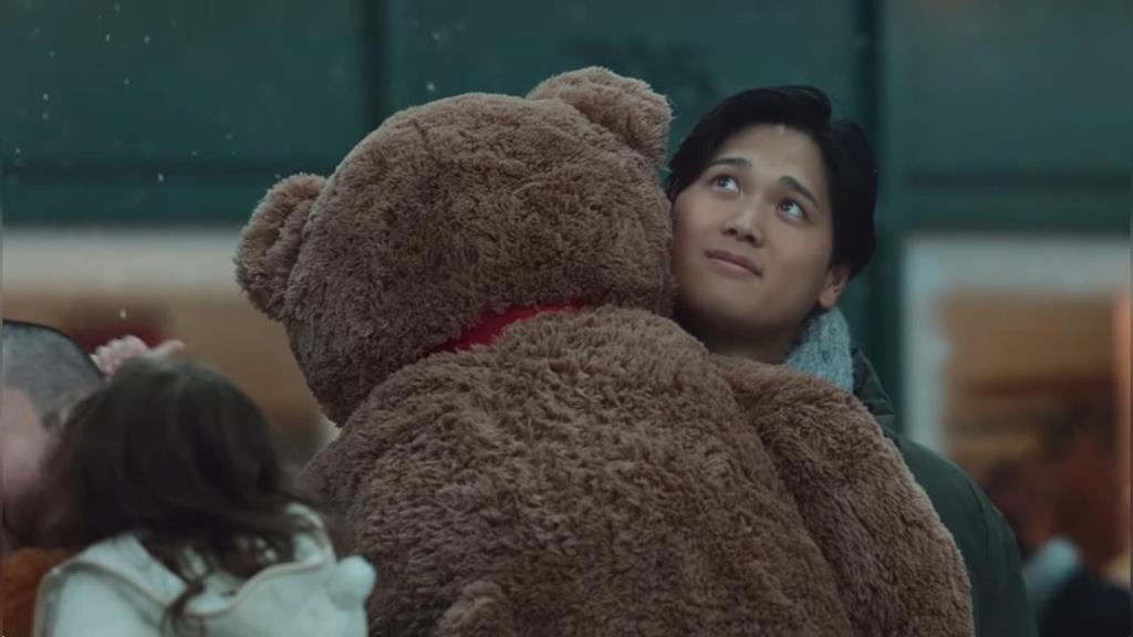 大谷翔平這支長30秒的電視廣告,由日本知名飲料與健康食品大廠Kirin Holdings製作,主要傳達免疫照護與新年祝福的溫馨主題。影片一開始,大谷圍著圍巾站在飄雪街頭,懷抱一隻巨大的熊玩偶等待紅綠燈,並對一名等候的女孩揮手致意,畫面溫馨又療癒。