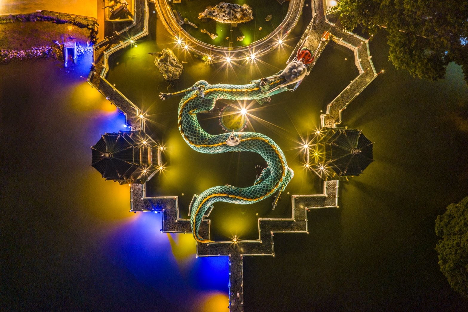 圖說:陳良印醫師空拍蓮池塘,連結生態、家族與族群敘事的視覺節點。圖片來源/陳良印提供