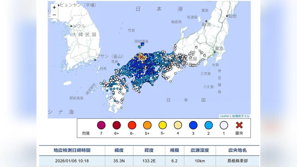 最新/遊客注意!日本島根縣東部20分鐘連六震 「最大規模6.2」暫無海嘯警報