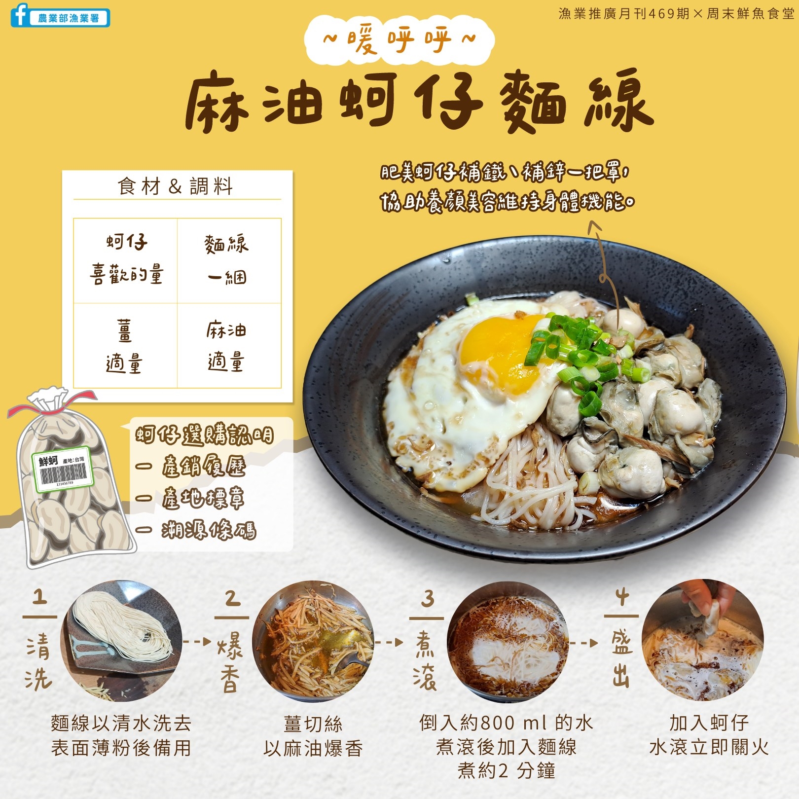 「麻油蚵仔麵線」四步驟簡易食譜。圖:翻攝自漁業署
