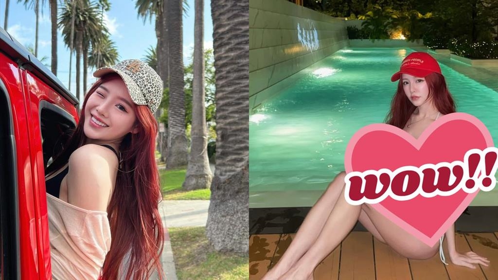 從照片中可見,李恩菲身穿白色兩截式比基尼,泳裝布料帶有細緻抓皺設計,上身以胸前綁帶與鏤空剪裁勾勒出身形曲線,下身則搭配側邊綁帶的三角泳褲,完美襯托她白皙膚色與修長美腿。她頭戴紅色鴨舌帽,搭配紅棕色微捲長髮,讓整體造型增添清新的青春氣息。在夜色泳池邊的木質平台上自然入鏡,或坐或躺、回眸甜笑,整體氛圍既清爽又性感,展現十足度假感。