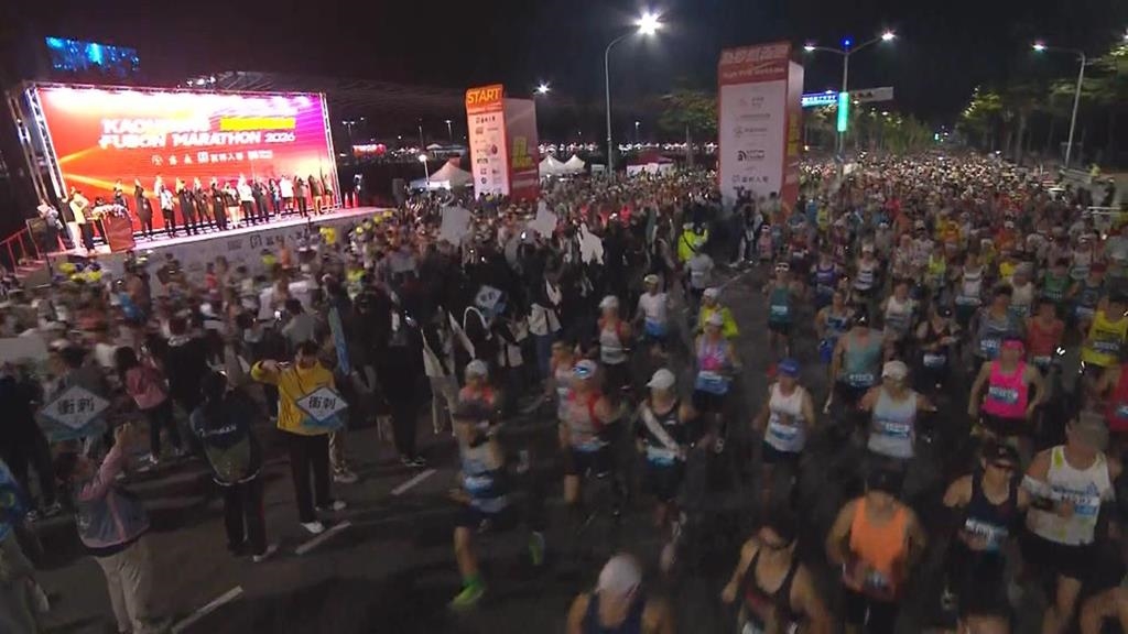 鳴笛聲響,選手們大步往前跑,高雄富邦馬拉松活動,第二天賽事以全程馬拉松跟半程馬拉松為主,天還沒亮,跑者們就在低溫14度下出發。今年賽事共有來自全球35個國家、超過540名外籍跑者參與,超過2萬人報名,活動路線橫跨六個行政區,沿途共有17個補給站,今年更推出橋頭肉包、岡山羊肉爐、彌陀魚丸湯等等在地美食,讓選手暖心又暖胃。參賽跑者:「第一次有這麼棒的肉包可以吃,好吃我早餐沒吃,肚子有點餓,我要等後面的烏魚子。」參賽跑者:「我第五次我們跑到第五次了,補給很好比往年很好多,所以要跑越久吃越多。」