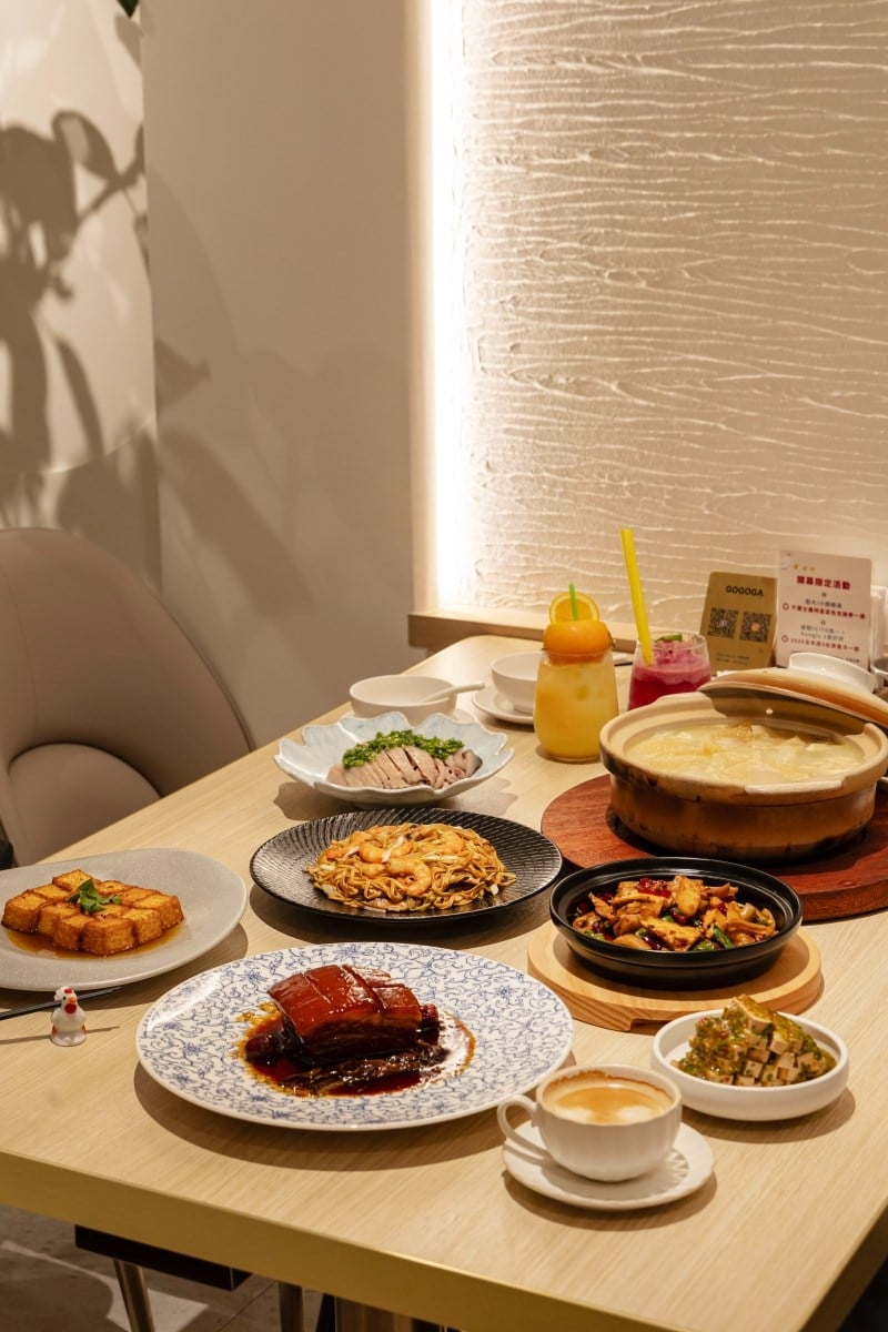 GOGOGA 給人的第一印象不像一般中式餐廳,而更像一間為冬天而生的「溫補餐桌」。從空間設計到燈光色調,都刻意營造出一種溫潤、安靜卻不冷清的氛圍,讓人一坐下來就自然放慢節奏。二樓包廂與多人桌配置,特別適合家族聚餐或久違重逢的朋友聚會,聊天不會被打斷,也不需要趕著翻桌。